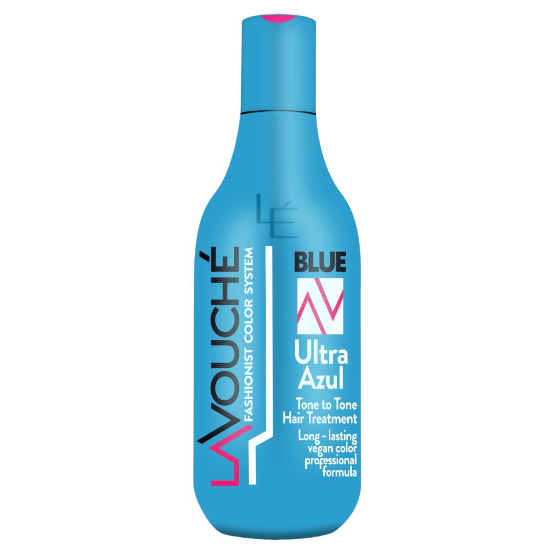 El tratamiento LAVOUCHÉ ULTRA COLOR AZUL acondiciona repara y humecta profundamente el cabello, al tiempo que retiene y protege por mas tiempo el color, puedes usarlo para mantención y para teñir tu cabello color azul fantasía en altura 9 y 10.
